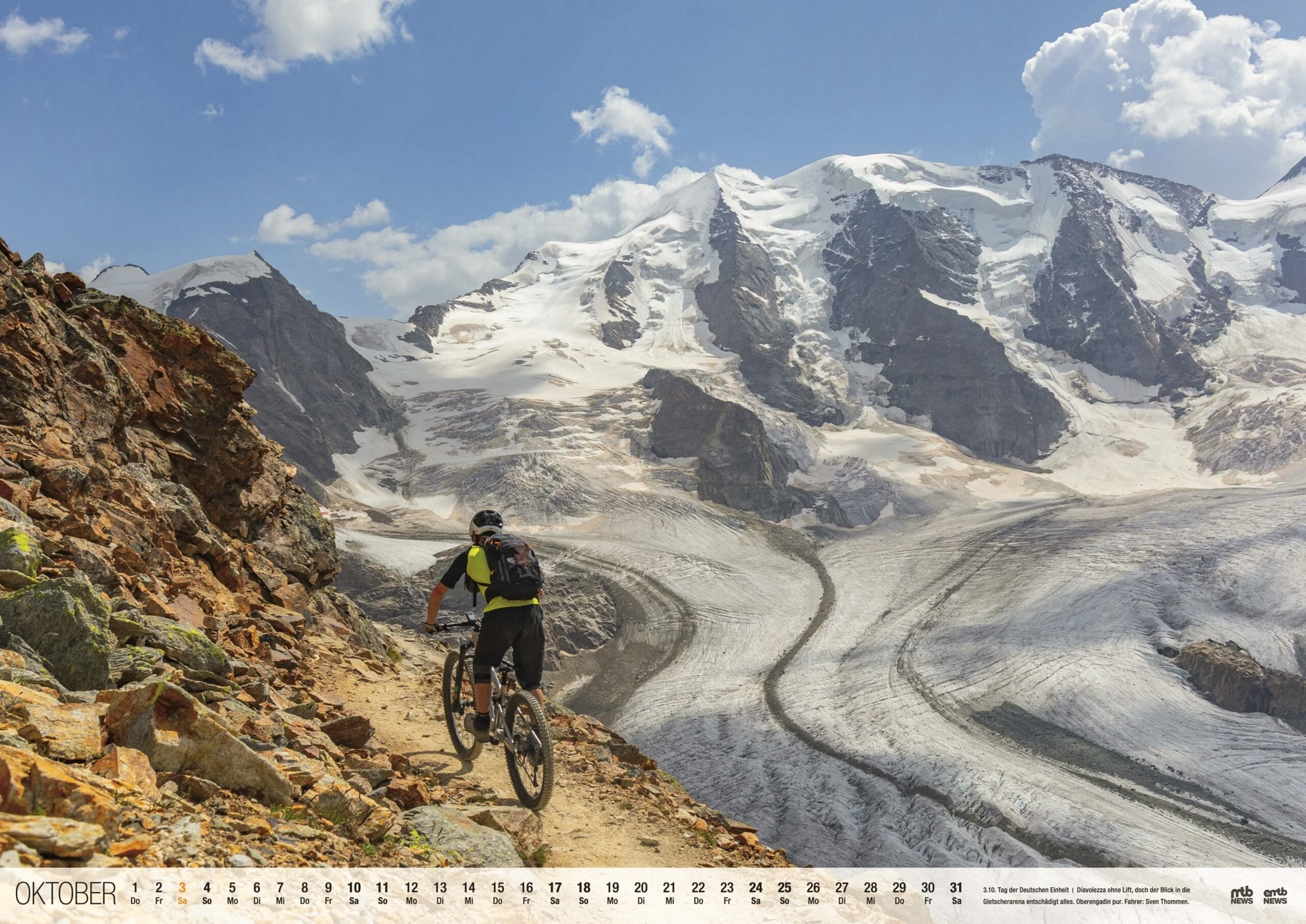 Nach den Ticinodays ist vor der Hochtourensaison und diese führte mich zuerst einmal zum Gourmetbiking nach Saas-Fee. Es folgte der mittlerweile auch schon traditionellen Abstecher nach Pontresina ins Oberengadin, wo dieses Bild entstand. Anscheinend verzauberte der Blick in die Gletscherarena nicht nur mich, denn das Foto schaffte es zu meiner Freude in den Kalender der grössten deutschsprachigen MTB-Community.