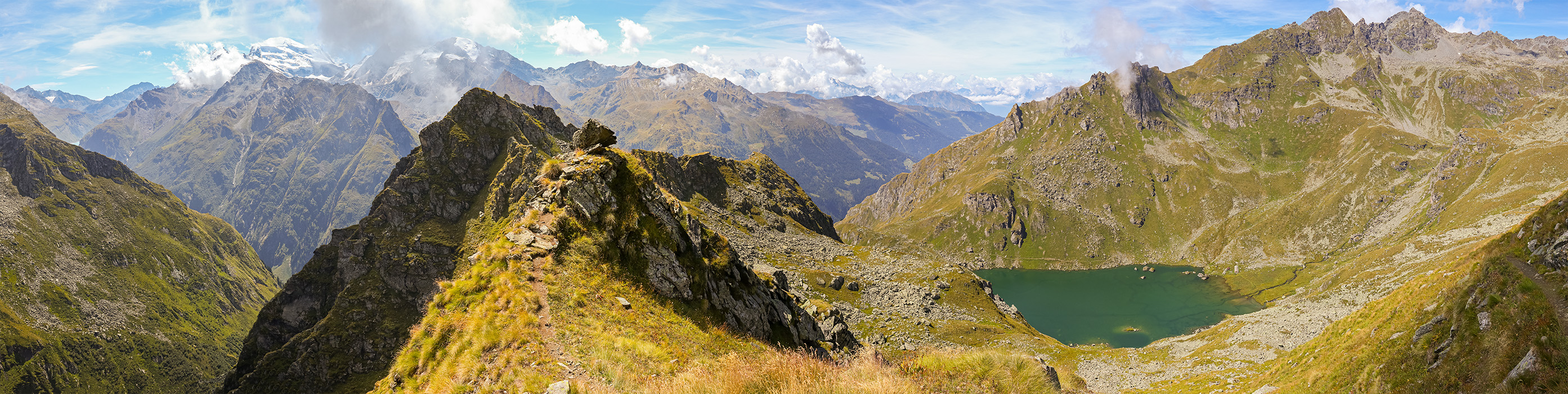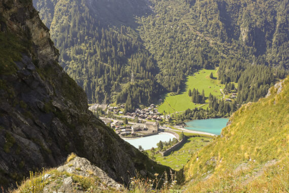 Am letzten Tag geht es erneut mit dem Bus zur Staumauer und dann auf dem gleichen Pfad in Richtung Col des Otanes, wie schon letztes Jahr mit Rotscher. Heute steige ich aber nur bis zu dem prächtigen Panoramafelsbrocken auf, wo ich es mir in der Sonne gemütlich mache. Das Plätzchen ist Spitzenklasse, wie eine Terrasse hoch über Mauvoisin. Von hier aus kann man auch gut erkennen, wie die höchste Bogenstaumauer Europas perfekt mit Präzision an der engsten Stelle zwischen den Felsen errichtet wurde.